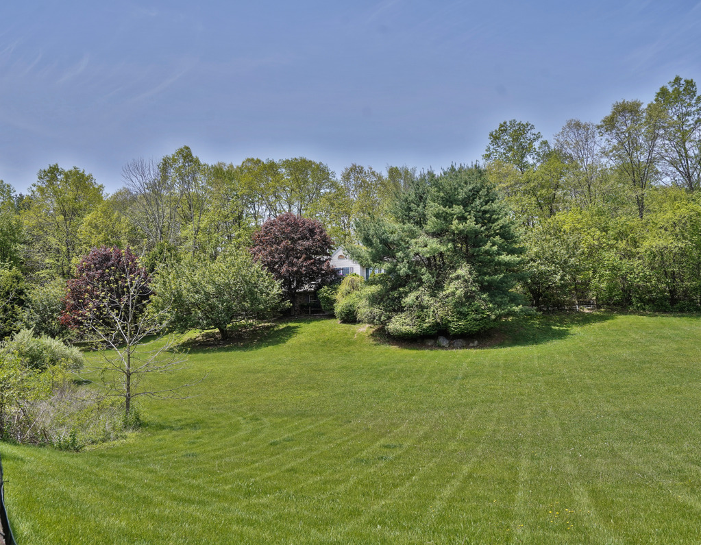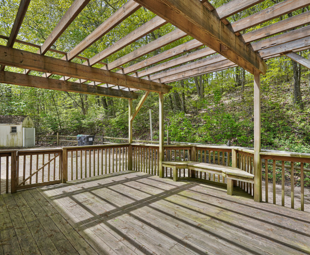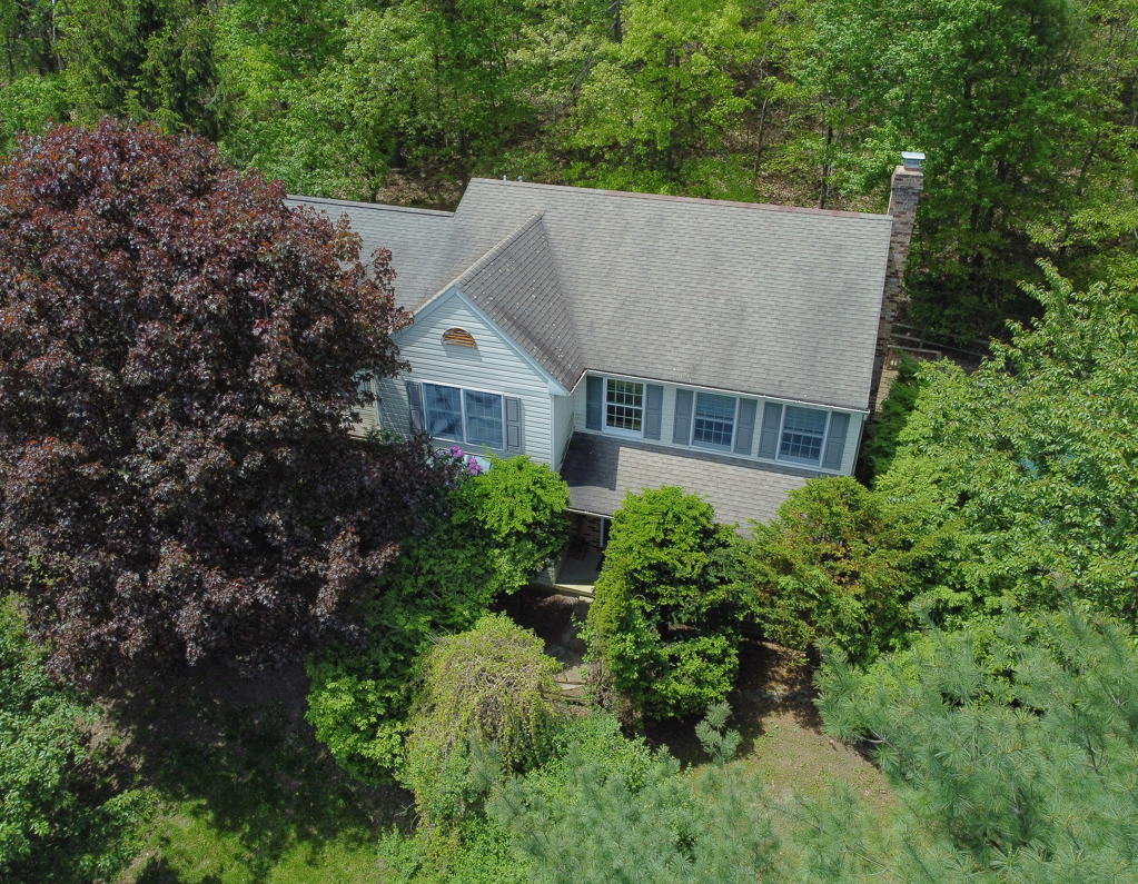 The large patio with deck enters into inground pool area overlooking acreage below. Close to Town, Wineries, Skiing, State Parks & Pocono attractions.