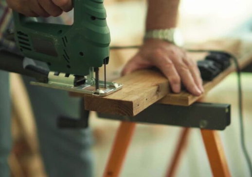 The basement has built-in workshop area and is waiting to be finished.